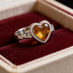 Elegant 18K gold non■tarnish heart ring crafted in stainless steel with a radiant center stone. A
