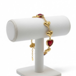 The 18K Gold Non-Tarnish Heart Glass Bracelet is a striking blend of romance and bold design.
