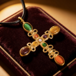 The 18K Gold Non-Tarnish Multi-Stone Cross Pendant is a timeless statement piece that blends faith,