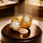 finger, featuring two luminous pearl accents that create a bold yet refined look. Perfect for elevating