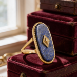 Adjustable stainless steel ring featuring a deep blue lapis lazuli stone with a non-tarnish