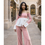 The Blush Pink Knit Off-Shoulder Set is designed for the woman who commands attention