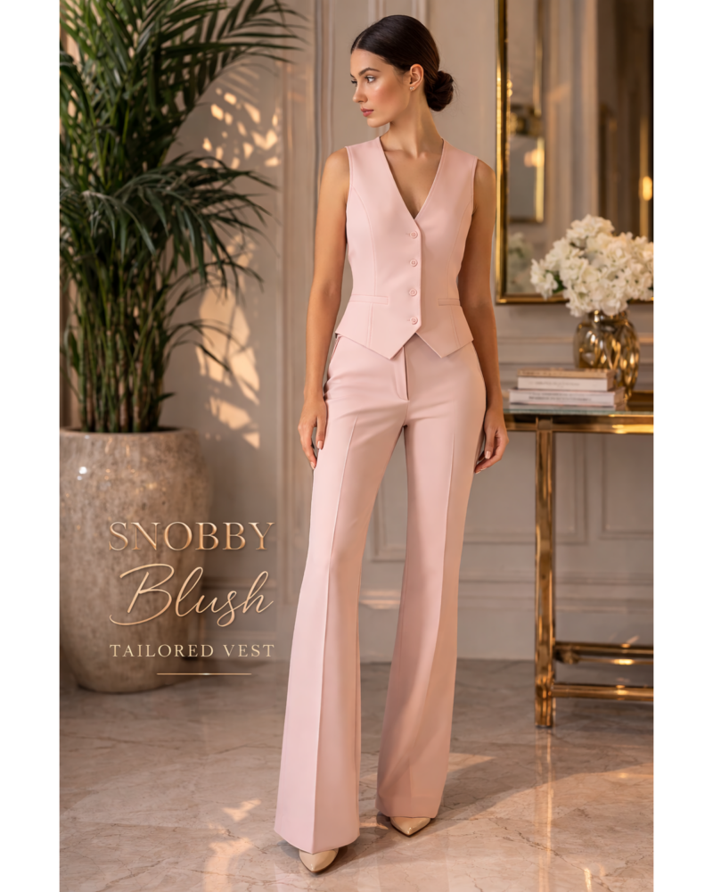 Tailored. Sleek. Elevated. The Blush Solid Woven Button Vest delivers sharp structure with refined