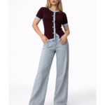 The Bordeaux Belle Contrast Trim Knit Top is the perfect balance of refined elegance and