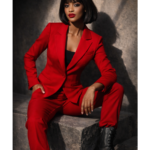 trousers for a polished yet fashion-forward finish. The vibrant crimson hue radiates power, passion,