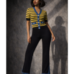 The Denim Charm Striped Cardigan & Pants Set is designed for effortless, polished styling with a