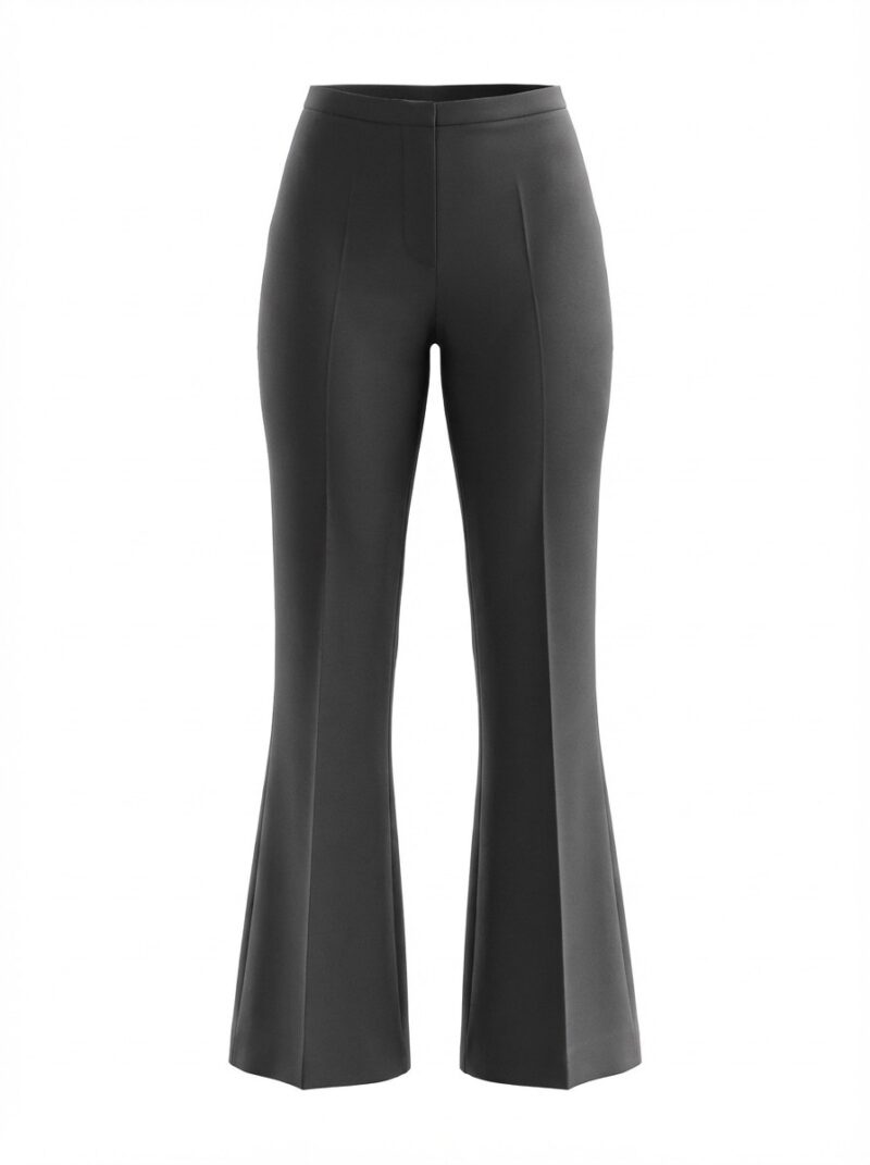 and dramatic flare leg opening, these pants create a lengthened, tailored look that transitions