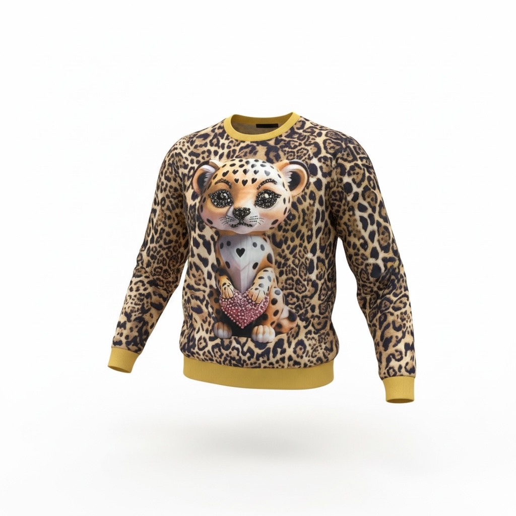 Statement leopard-print sweatshirt with sparkling rhinestone heart detail and a soft, cozy fit.
