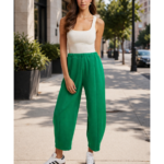 Where comfort meets quiet luxury—designed for the woman who moves with confidence and never sacrifices style. Soft knit barrel-leg pants with a relaxed fit, elastic waist, and slight tapered crop—effortless, elevated, and comfortable.