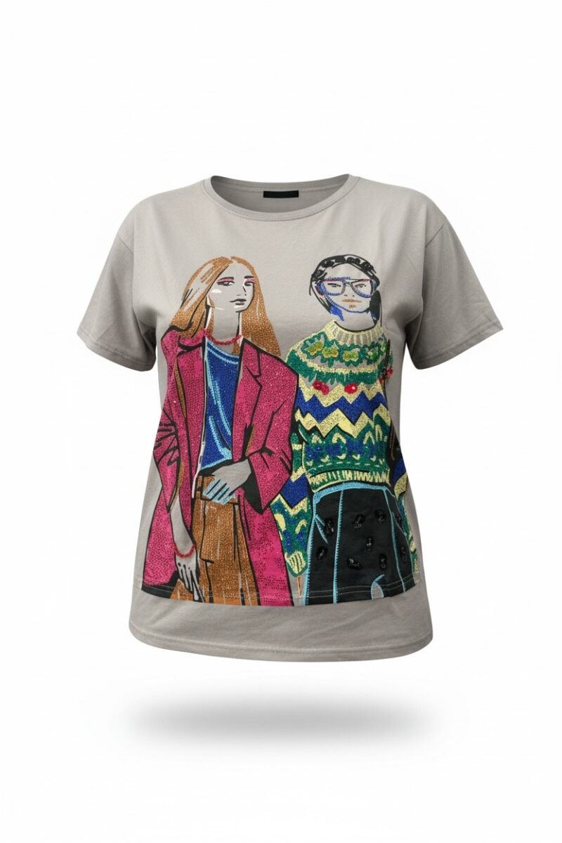 fashion-girl design with rhinestone detailing, this tee blends art and style effortlessly. Designed for
