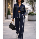 Where comfort meets elevated sophistication. The Navy Blue Luxe Sport Chic Jogger Set is designed