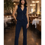 The Navy Solid Woven Button Vest is designed for the Snobby Woman who embodies confidence,