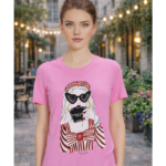 Boutique women’s pink graphic t-shirt with a soft, comfortable fit. Perfect for everyday wear and