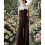 knit base layered with a structured brown pinstripe bow overlay, creating the illusion of a perfectly