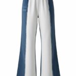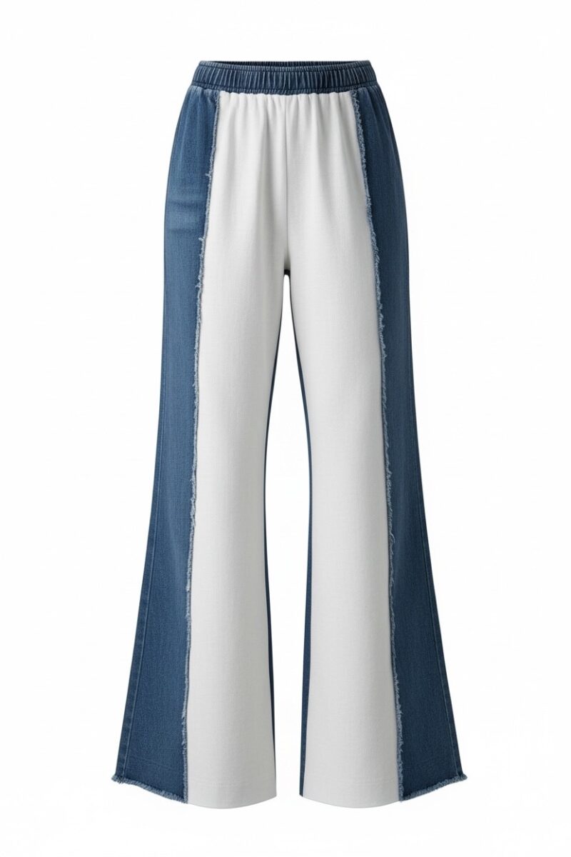 Statement wide■leg pants featuring soft terry center panels and denim contrast sides for a modern,