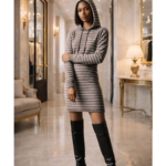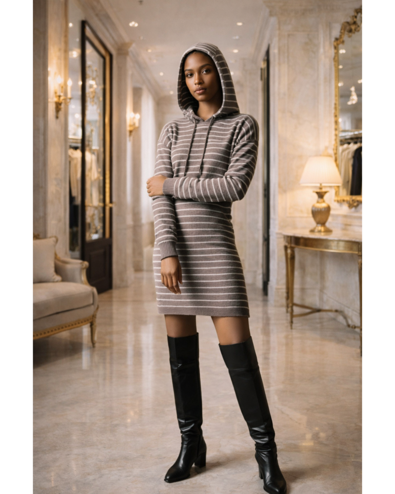 Stay cozy and stylish in our Purple Striped Hoodie Sweater Midi Dress, the perfect blend of comfort and