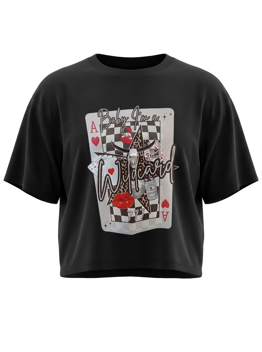 Turn heads in our Retro Wildcard Graphic Relaxed Crop Top, designed for women who love bold detail