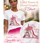 Turn heads in this statement graphic tee featuring a stunning rhinestone Eiffel Tower and floral design paired with a glam high heel illustration. This top blends feminine elegance with everyday comfort, making it perfect for dressing up or down. The soft stretch fabric hugs just right while keeping you comfortable all day. Style it with bold bottoms or denim for an effortlessly chic look.