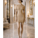 Crafted from a luxe knit blend, this beige ribbed dress enhances the natural shape while offering