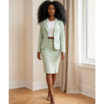 A sleek, figure-hugging sage crepe skirt designed to sculpt, smooth, and elevate your everyday power look.