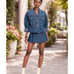 The Snobby Luxe Studded Fit & Flare Denim Jacket is a bold statement piece designed to elevate any outfit. Made from 100% cotton denim with a medium wash effect, this jacket features eye-catching stud detailing across the shoulders for a vintage luxury feel. The fit-and-flare silhouette with an elastic waist creates a flattering shape while maintaining a relaxed, comfortable fit. Perfect for styling with dresses, skirts, or denim for a chic elevated look.