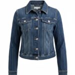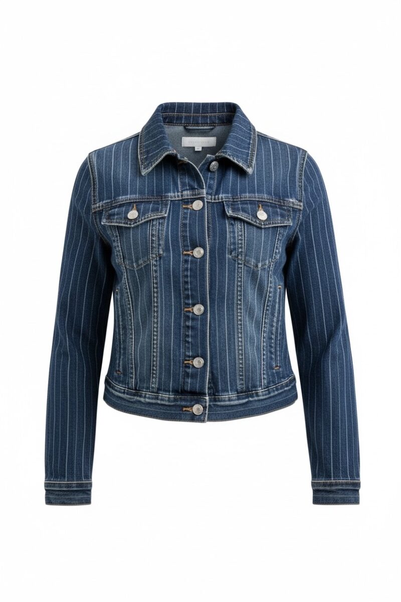 This striped stretch cropped denim jacket is the perfect blend of classic denim and modern edge.