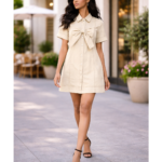 She doesn’t try too hard… she is the moment. The Ivory Muse Bow Dress is where soft femininity meets polished power—made for the woman who walks in and owns the room effortlessly. Chic, feminine, and effortlessly polished mini dress featuring a statement bow detail and structured silhouette.