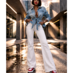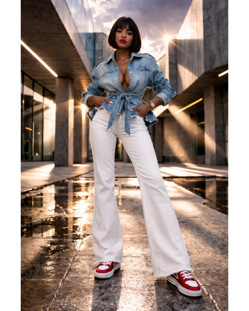 who owns every room she enters. Crafted in classic blue denim with intentional distressed