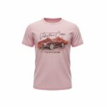 Soft pink cotton graphic tee with a vintage car design. Lightweight, breathable, and comfortable with