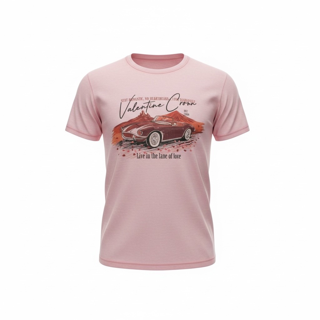 Turn heads with this soft pink Valentine Crown Graphic Tee, featuring a vintage-inspired car design